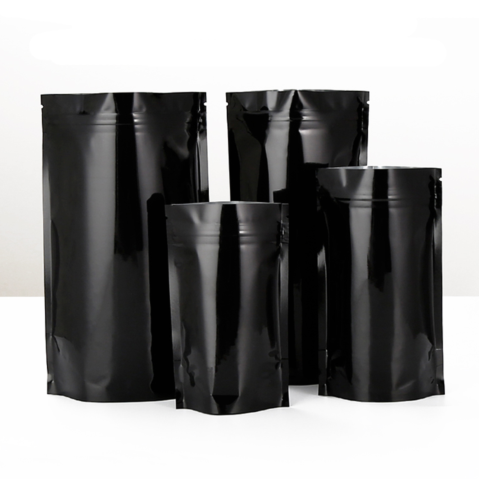 ADAMAS-BETA Wholesale 50pcs Aluminum Foil Ziplock Bag 0.12mm Self-Standing/Self Sealing Black Food Grade Self-Locking Packaging Bags