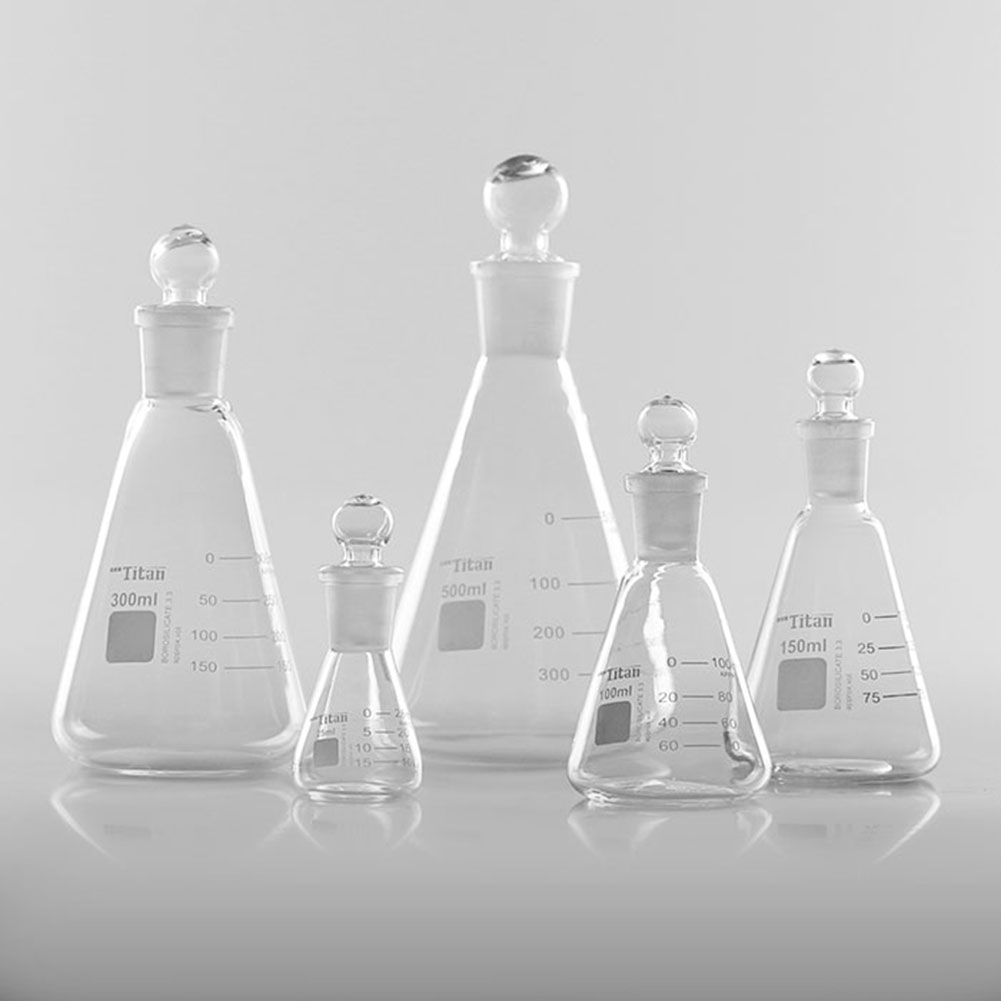 ADAMAS BETA Stoppered Erlenmeyer Flask Graduated Laboratory Glass Triangular Volumetric Flask 25-1000ml Reagent Storage Bottle with Grinded Plug