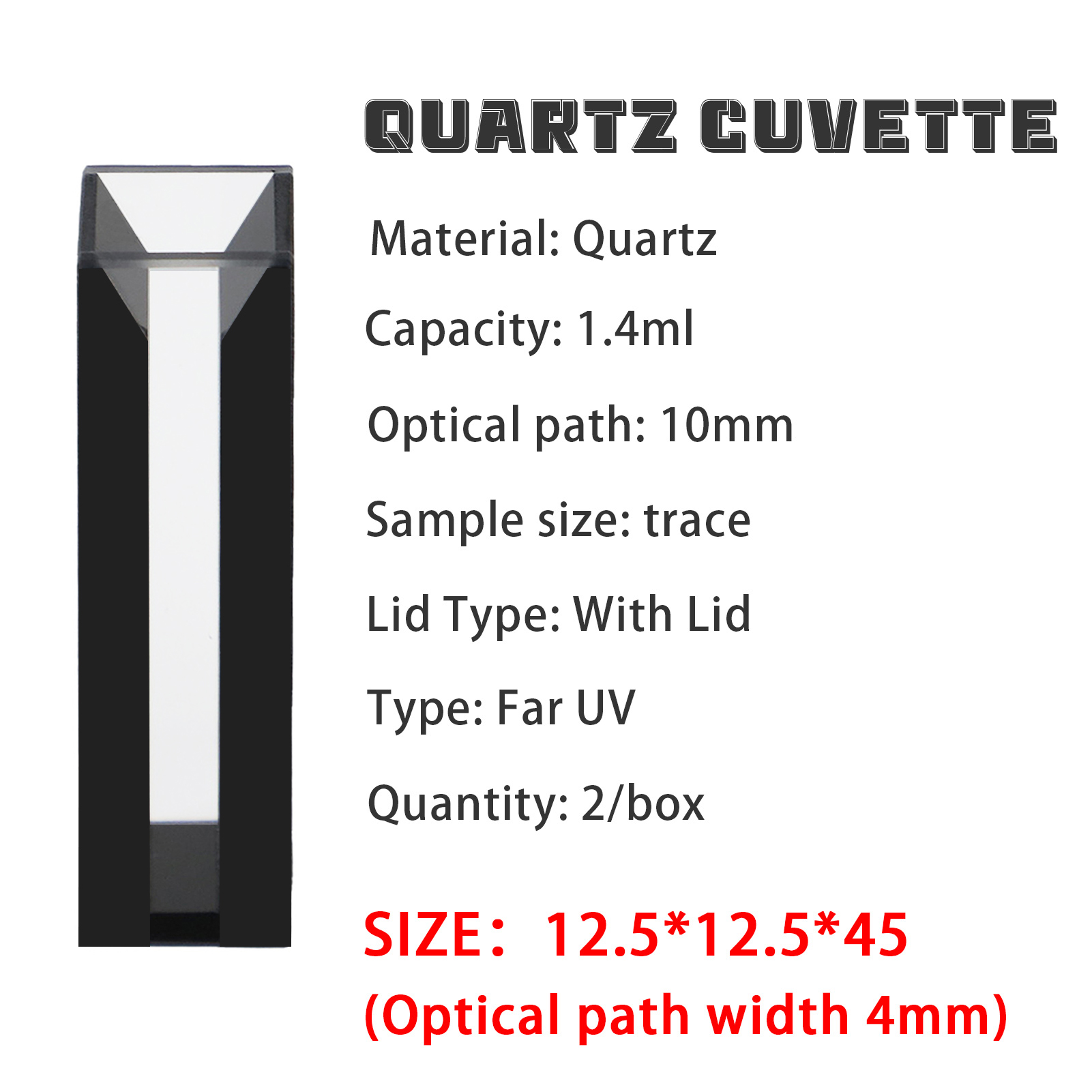ADAMAS BETA 2Pcs Quartz Cuvette with Cover Black/White Wall 45x12.5x12.5mm Optical Path Width 1-5mm for Spectral Analysis Experiment