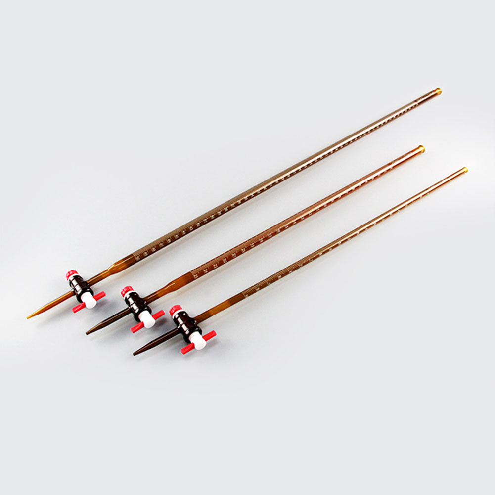 2. Structure: the lower end is a PTFE piston, which is used to control the flow rate. Acid and alkali corrosion resistance, all burets can be dual-purpose.