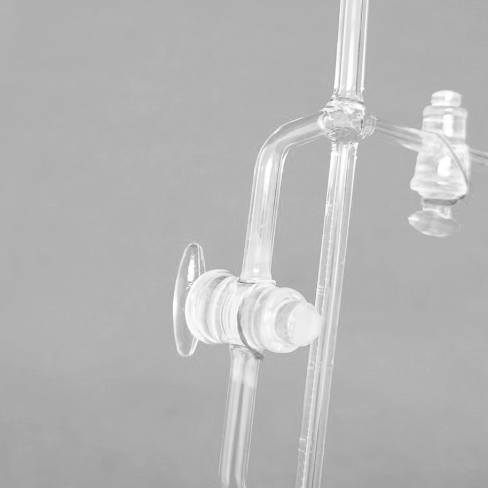 2. Clip type micro burette is a burette connected with the liquid injection tube. The upper part of the liquid injection pipe is connected with a funnel and the lower part is connected with a two-way piston to control the flow rate.