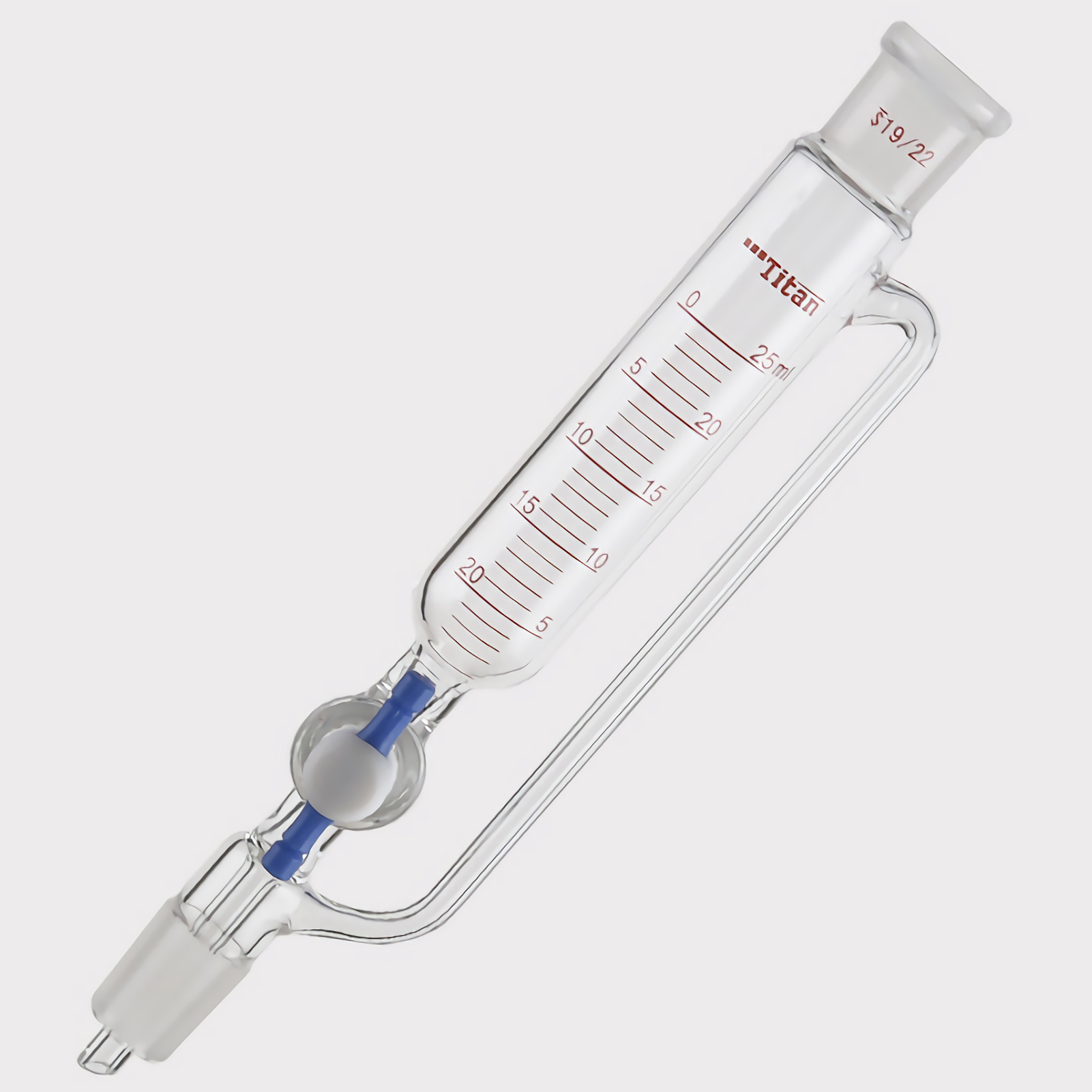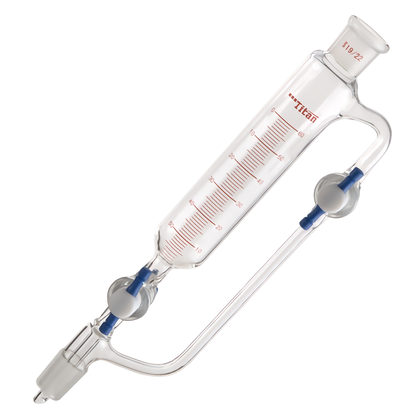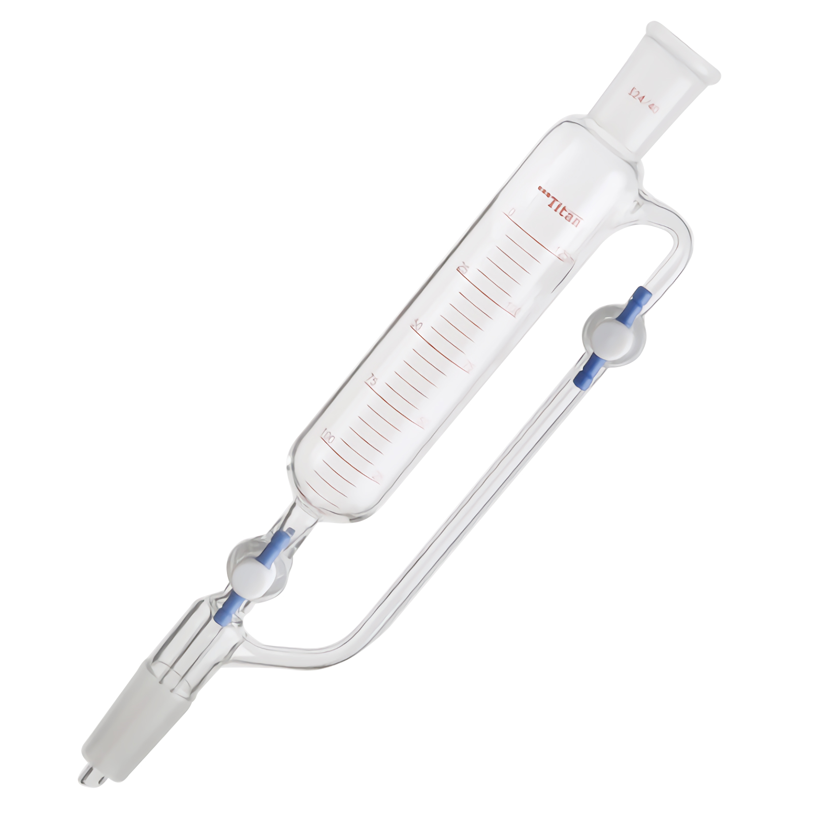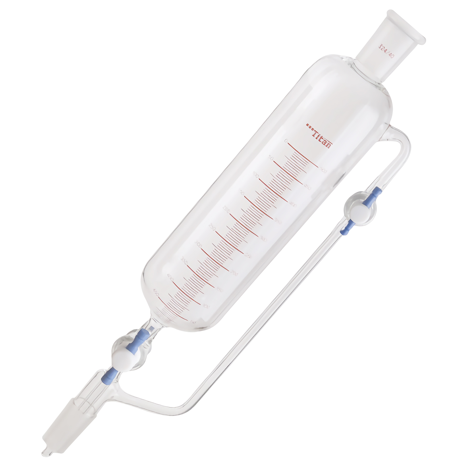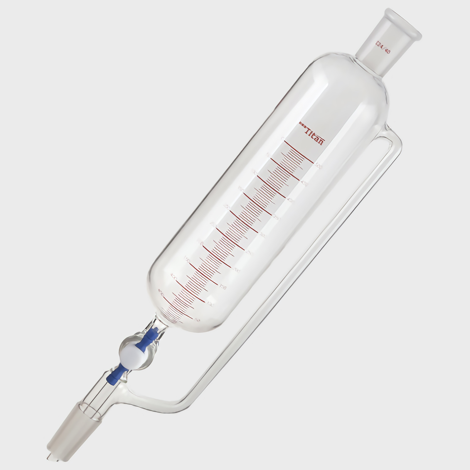 (1) The pressure equalizing funnel is used to slowly and steadily add an accurate amount of liquid to the receiving bottle. Through the narrow-bore tube on the side, the liquid in the funnel drips smoothly without removing the glass joint plug.