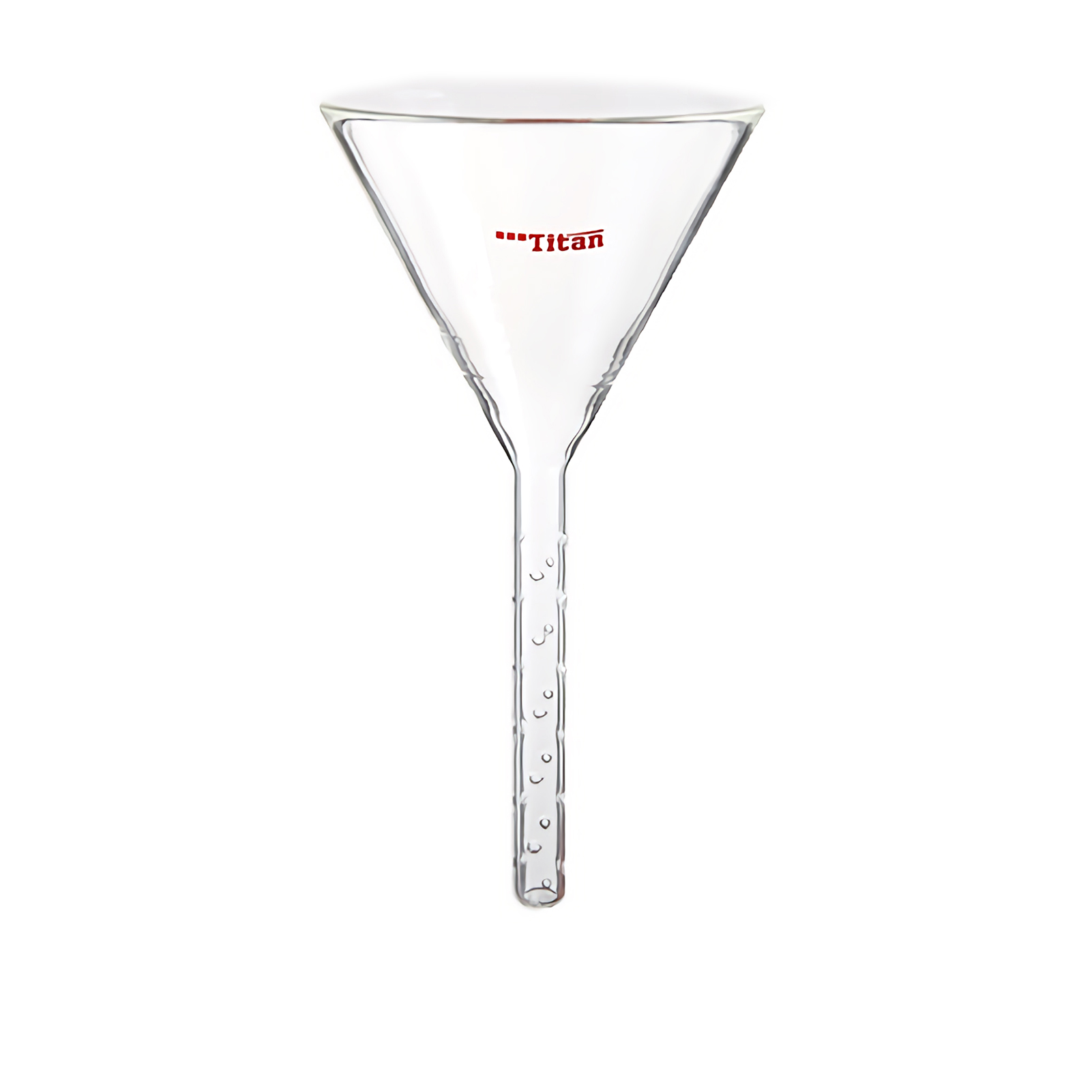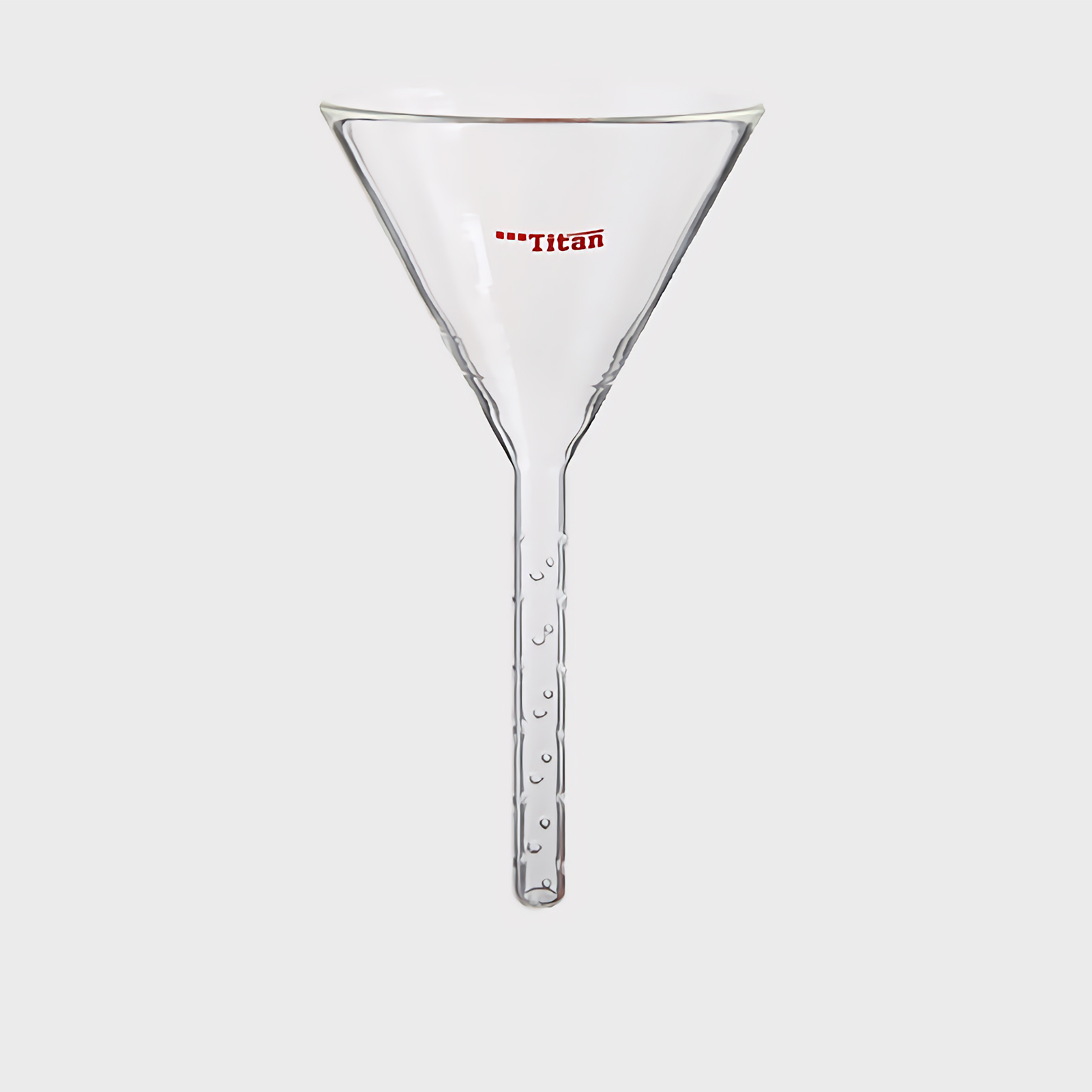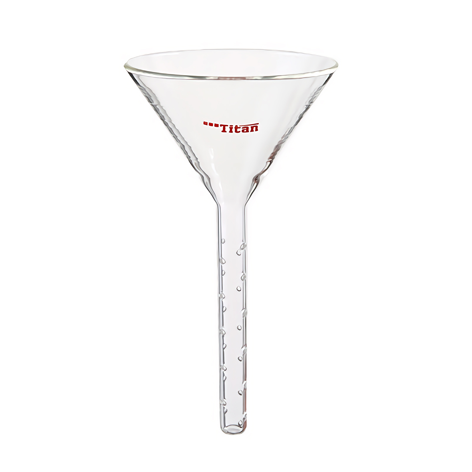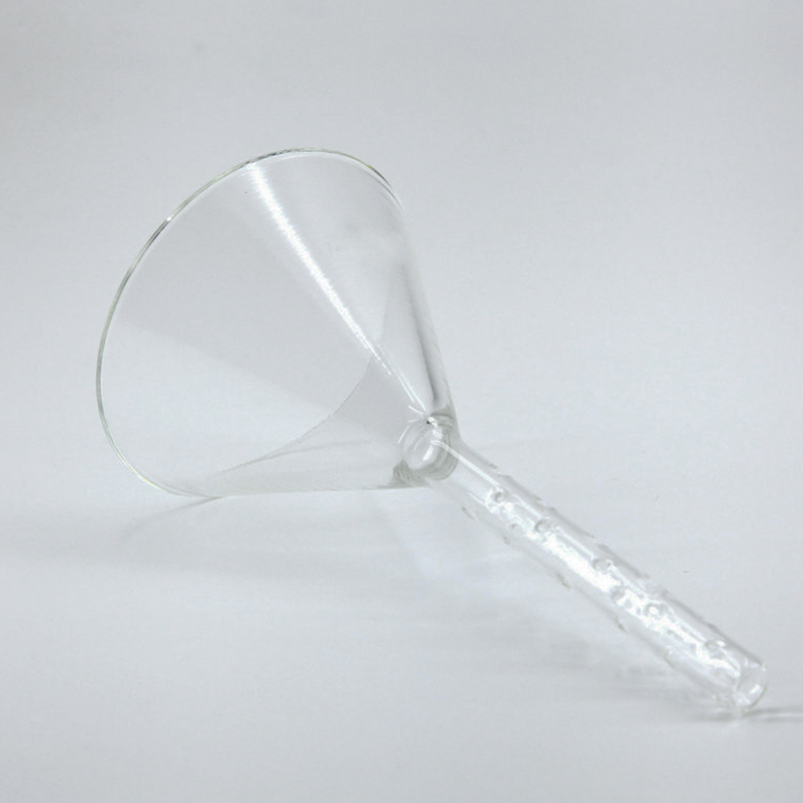 2. Function: the developing agent will spray outward along the small hole at the bottom of the funnel onto the chromatographic column wall and flow down the chromatographic column wall, so as to prevent damaging the silica gel surface when adding the developing agent.