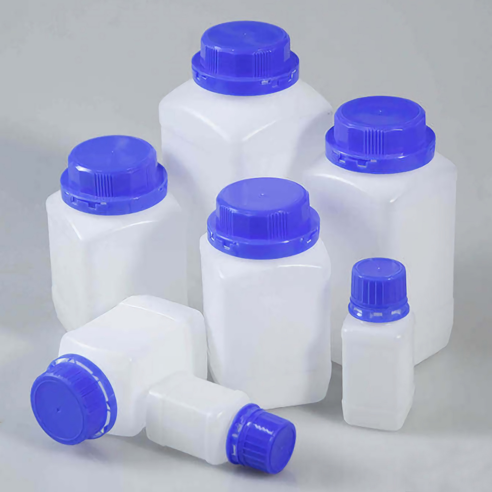 ADAMAS-BETA Lab HDPE Plastic Square Bottles with PP Screw Cap Laboratory Sealing Wide Mouth Bottles for Liquid/Solid/Powder Reagent Storage