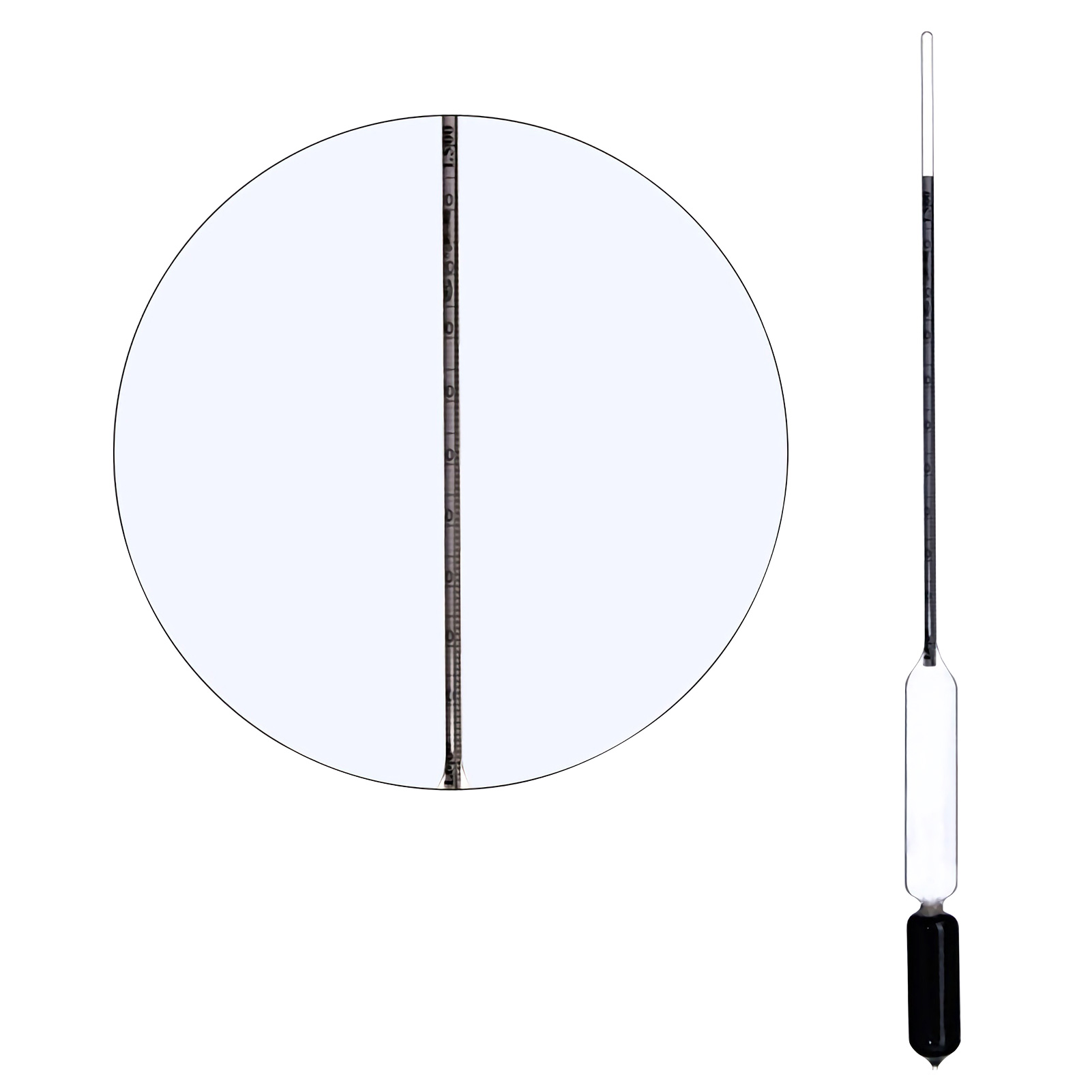 5.Put the black head down and vertically into the measuring cylinder. After the floating up and down stops, read the value horizontal with the liquid level, which is the density value.