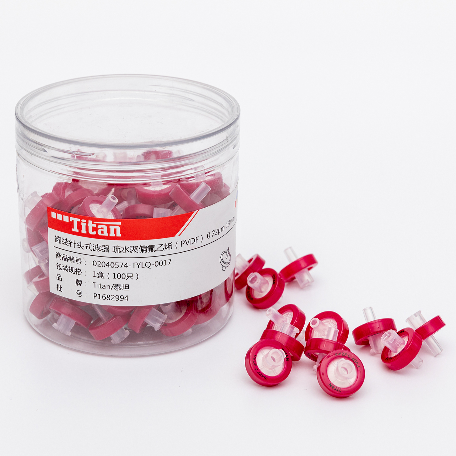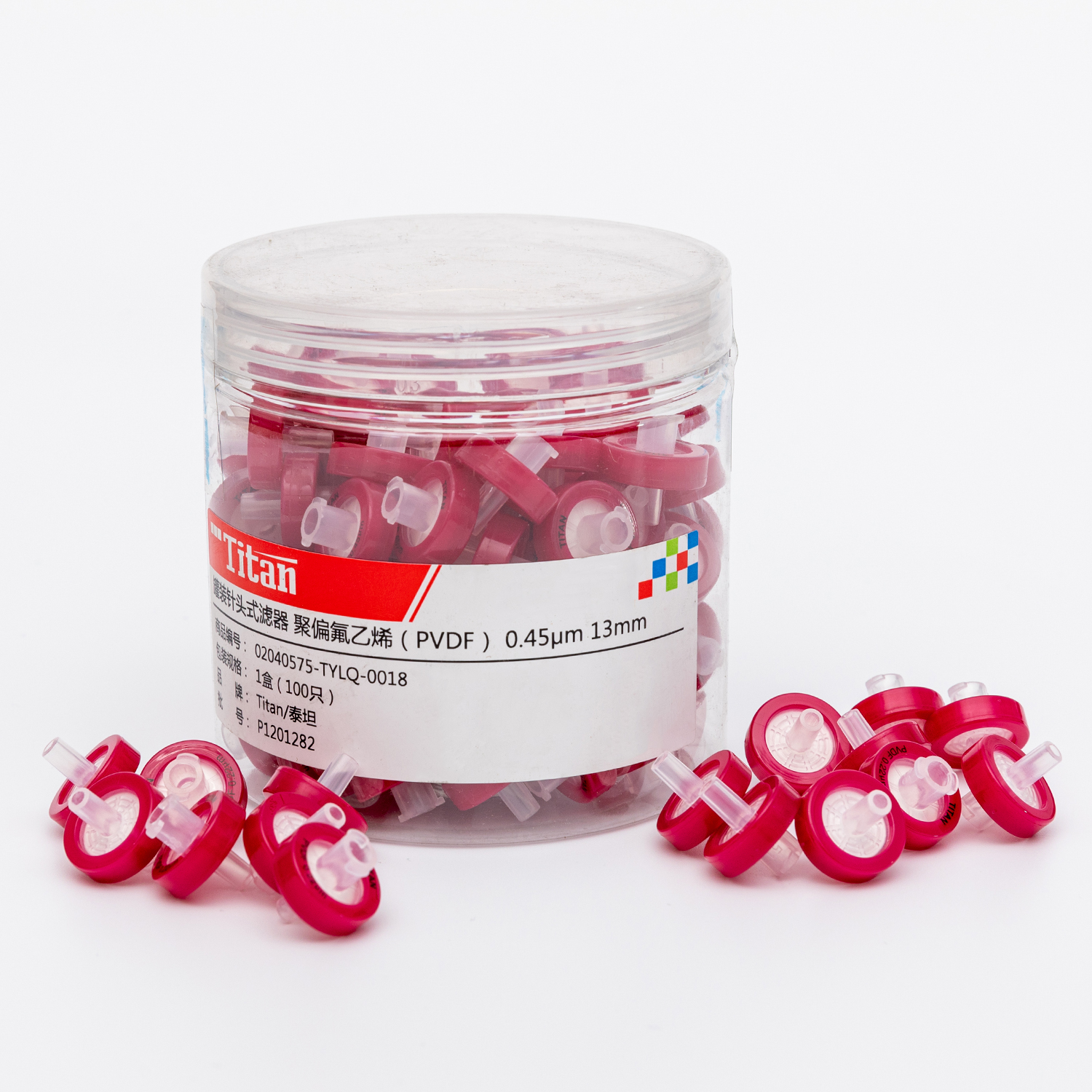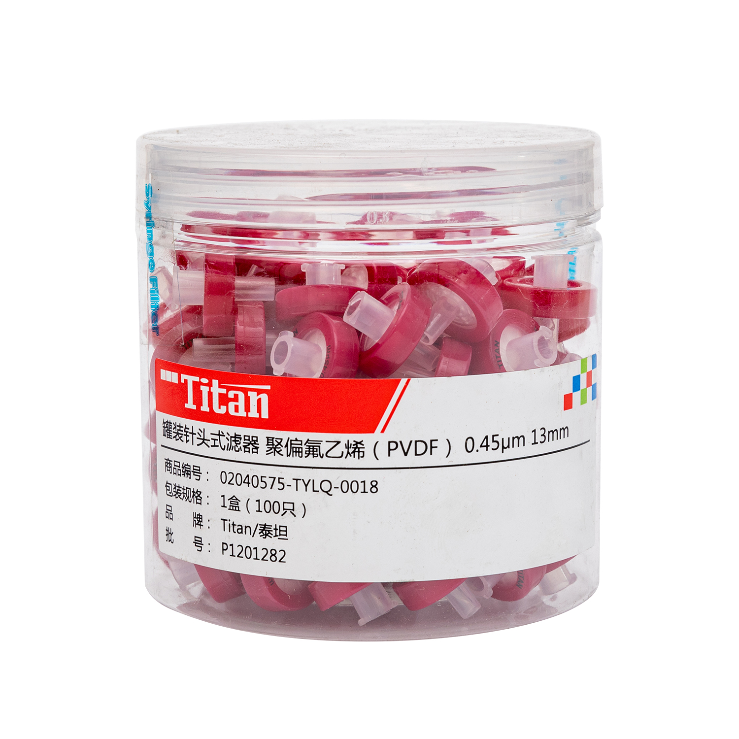 ADAMAS-BETA 100pcs/Box Lab Disposable Needle Filters with PVDF Membrane Hydrophobic 13mm 25mm Dark Red PP Syringe Needle Filters Polyvinylidene Fluoride Membrane